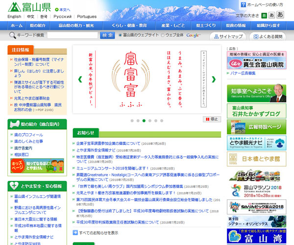 富山縣的官方網站。富山縣介紹、觀光、特産品或文化等富山魅力之傳播,並刊登代表性産業之介紹、國際交流等富山縣相關的所有情報。